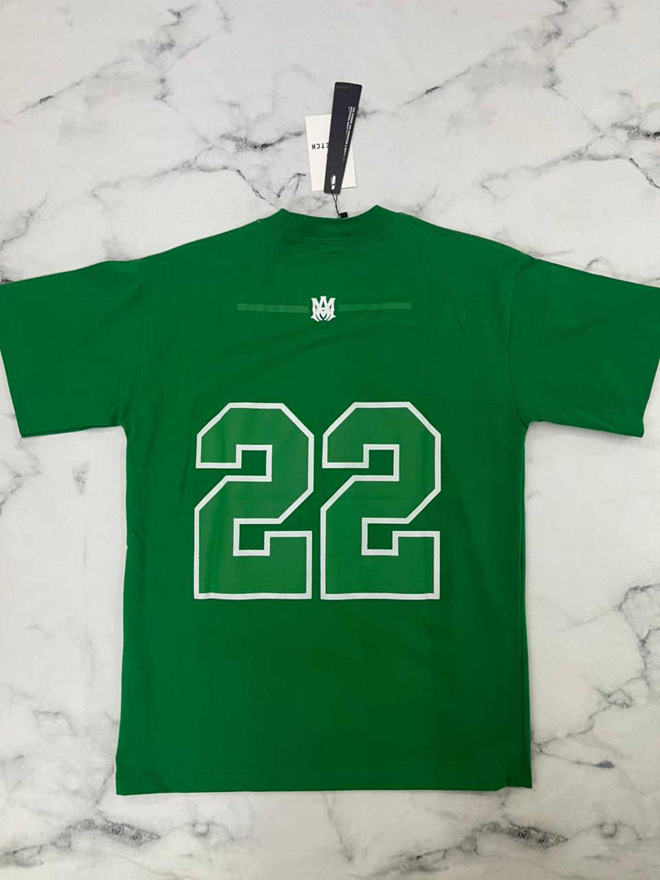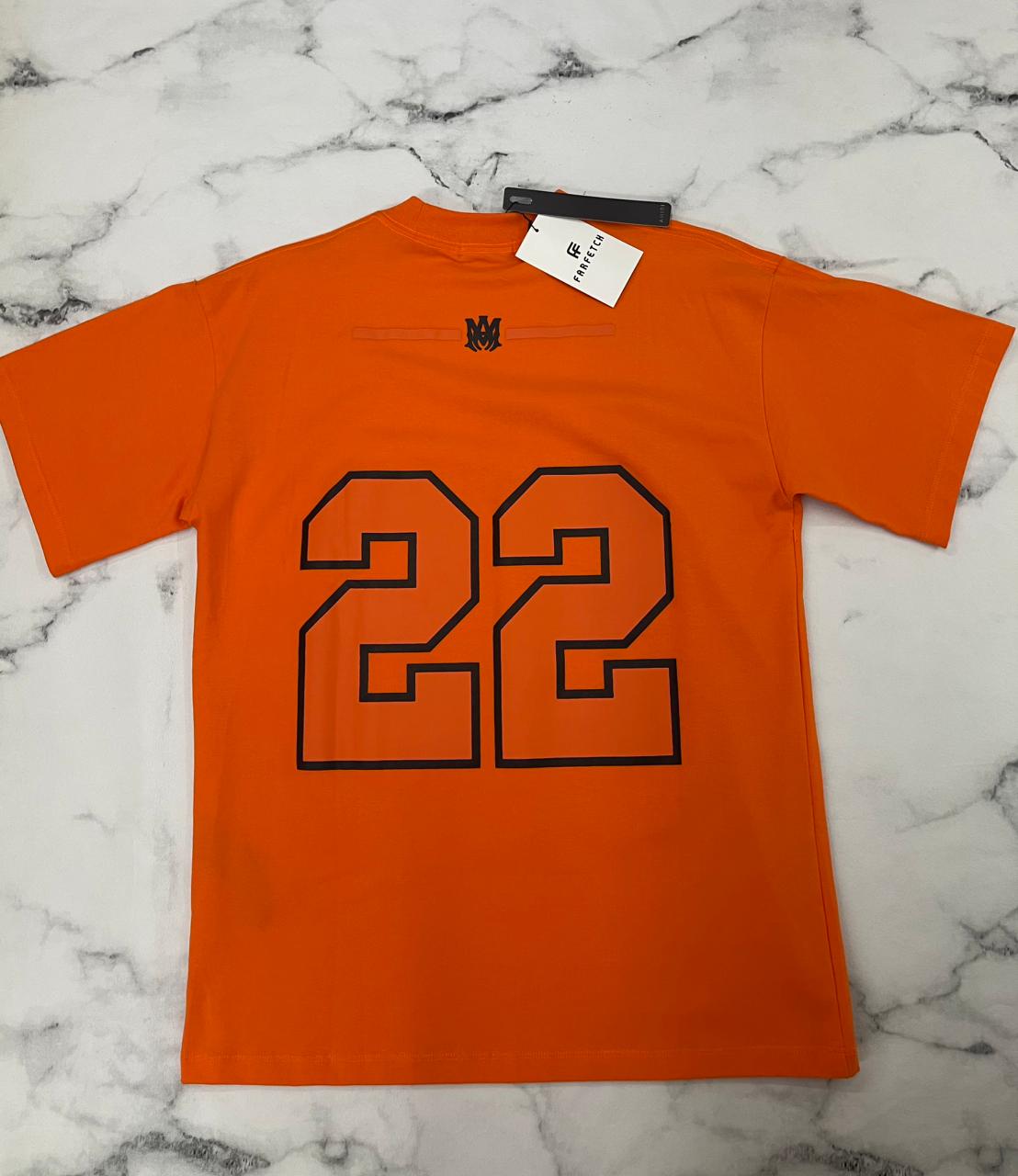 Remera Amiri roja con diseño deportivo y número “22” al frente, ideal para un look urbano con estilo varsity.